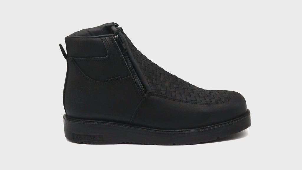 Incredible and good-looking short boots, made from genuine leather with a classic style and an artisanal hand-made unique basket weave design. With two metallic zippers on the shaft that will make it easier to pull on. A pig skin leather lining interior and a wide square toe guaranteeing great comfort during use and enhancing mobility. Also, a rubber sole with high-quality bonding that not only provides comfort due to its flexibility and light weight but also offers good grip on any surface.
