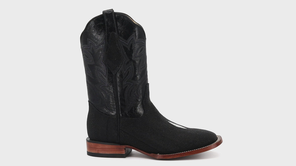These refined boots make a bold impression with their sleek design and rare materials, perfect for formal events or dressing up your everyday look. Made from genuine stingray leather, they feature a distinctive pebbled texture and natural sheen that catches the light with every step. The shaft is accented with tasteful embroidery and classic pull-on straps for an elevated western touch. Inside, a smooth cow leather lining ensures breathable comfort, while the sturdy leather sole adds a polished finish and lasting support. Durable, eye-catching, and expertly crafted, these boots offer a sophisticated blend of exotic luxury and timeless style.