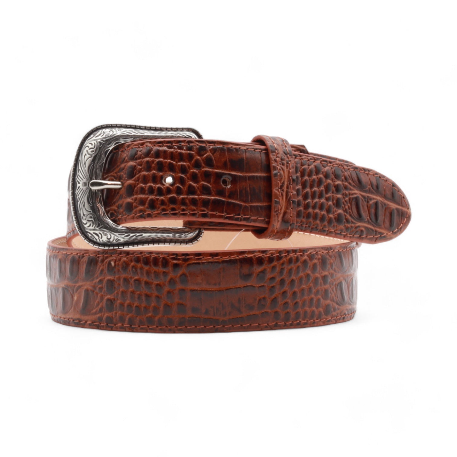 Montana Brown Alligator Print Leather Belt